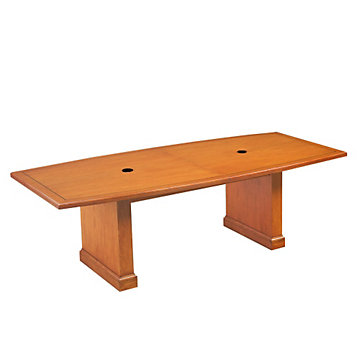 DMI Belmont collection 8′ boat shape conference table is constructed of hardwood solids and veneers, with Cherry veneer inlays bordered by Walnut banding.