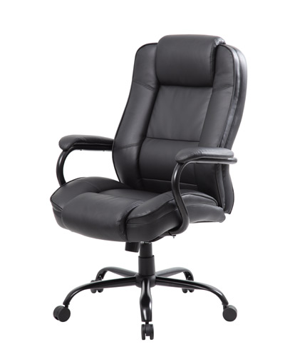 Upholstered in Black LeatherPlus upholstery. LeatherPlus is leather and polyurethane for added softness and durability.