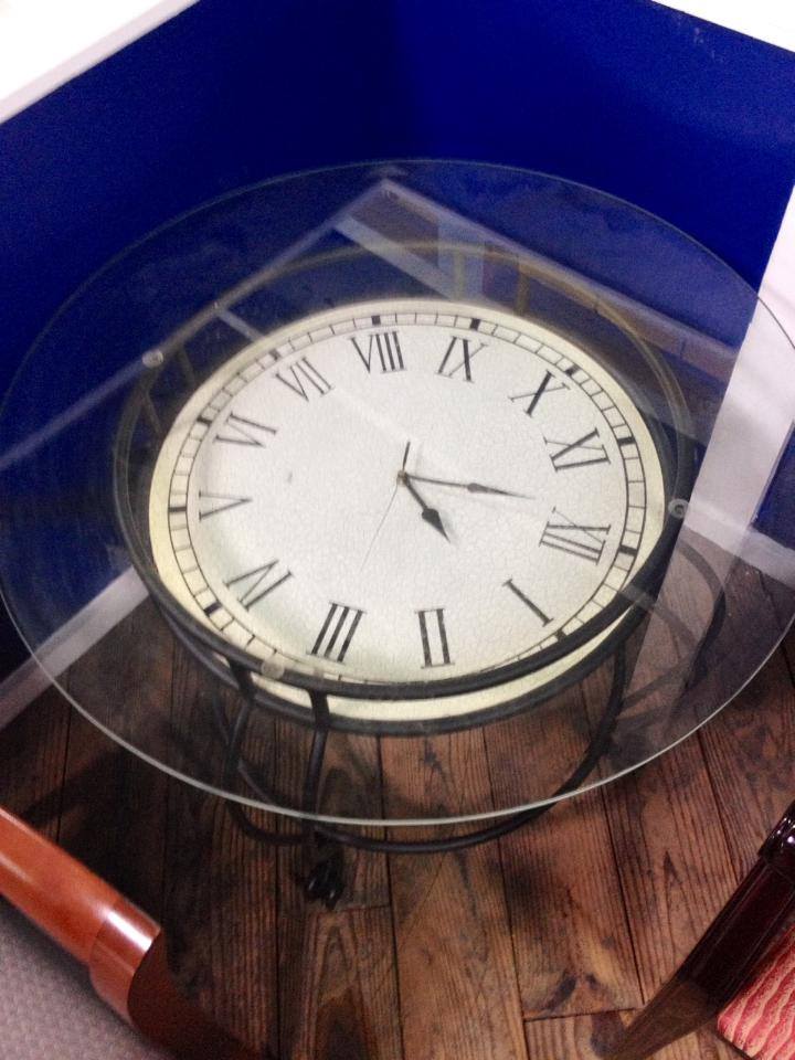 This is a very handsome coffee table with operating clock. Bold roman numerals contrast with the light antique-style face. Sturdy metal legs and glass top. Operates by a highly accurate quartz movement. Why wait? Place your order today!