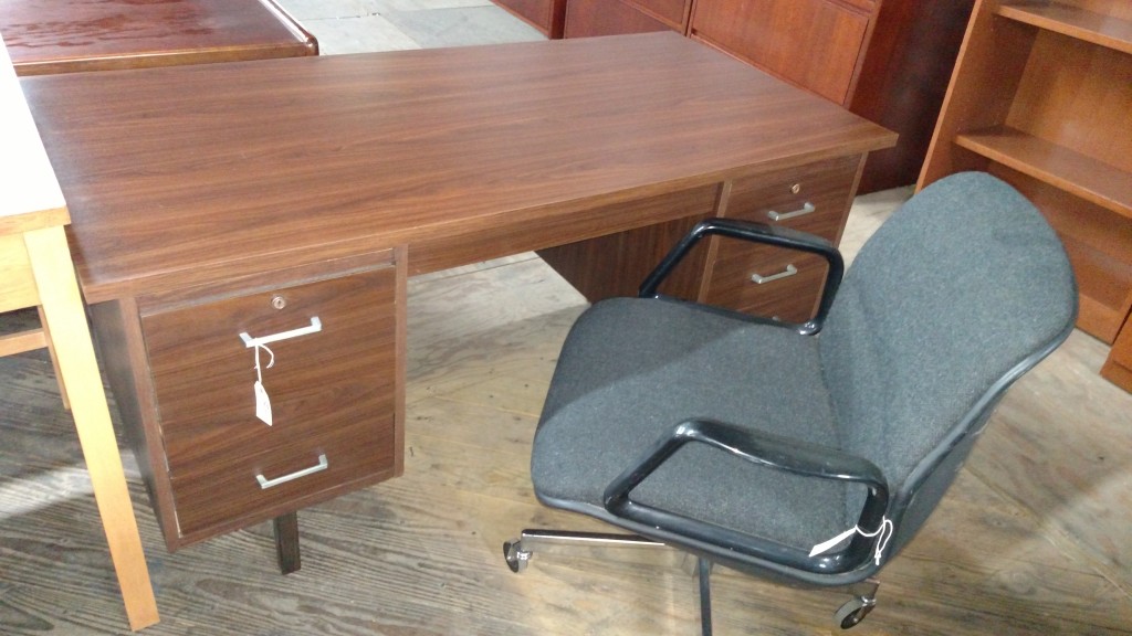 This Double Pedestal Desk comes with two suspended pedestal files for storage. Durable, melamine work surfaces are scratch and stain resistant. Sturdy, smooth operating doors and drawers. Locking file drawers, steel ball-bearing suspensions. Commercial-grade furniture. Easy cam lock assembly required.