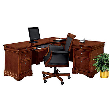 DMI Office Furniture Rue de Lyon Collection Executive Left L Desk is quality crafted with maple solids and American cherry veneers with select hardwood detailing.