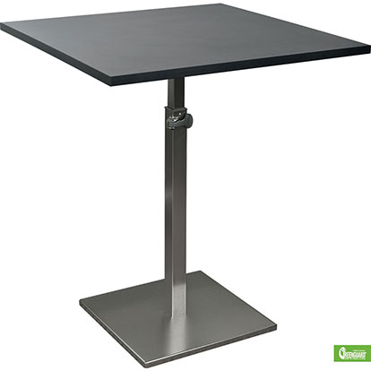 Height Adjustable Bistro Table w/Brushed Steel Base Dimensions: 31-1/2″W x 31-1/2″D x 30 – 43-1/2″H Adjustable from 30″-43-1/2″H to work with chair or stool. See also different: COE Desks & Workstations << return to products